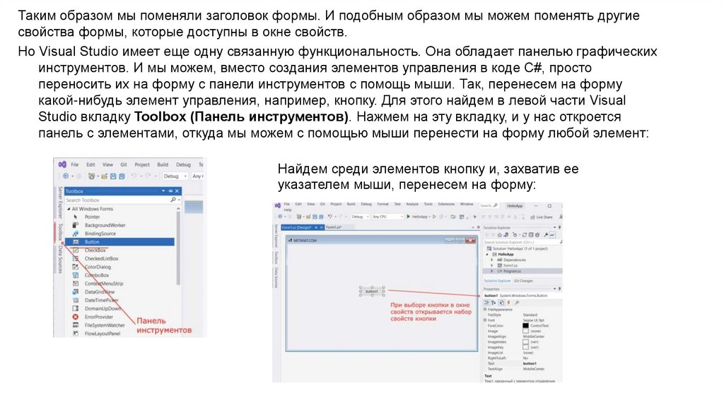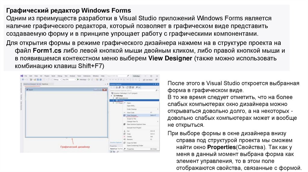 Графический редактор Windows FormsОдним из преимуществ разработки в Visual Studio приложений Windows Forms является