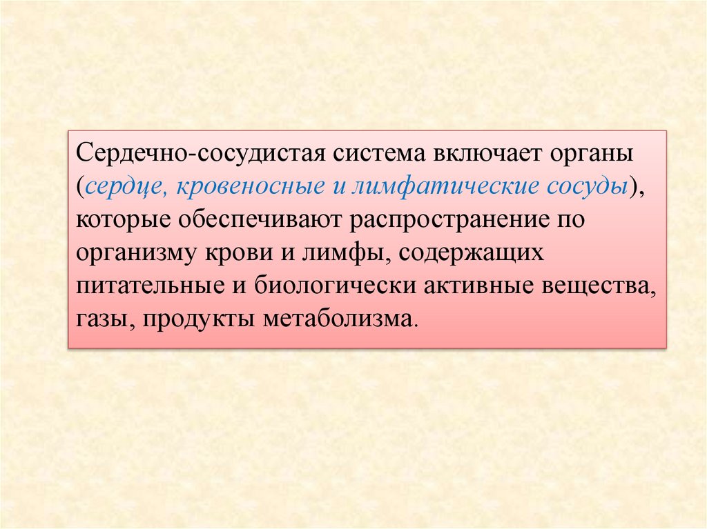 Сердечно-сосудистая система включает органы(сердце, кровеносные и лимфатические сосуды),