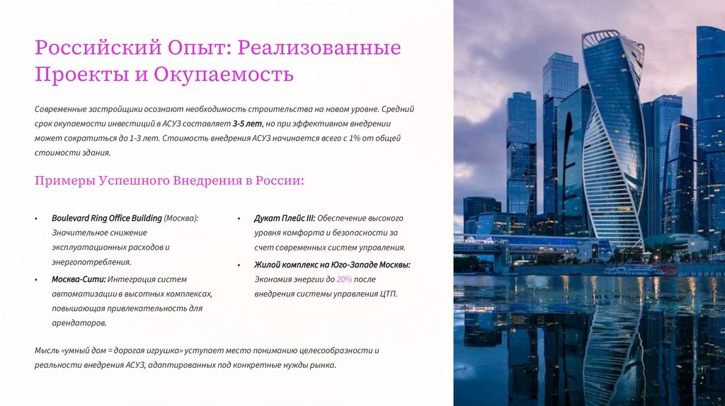 Российский Опыт: РеализованныеПроекты и Окупаемость