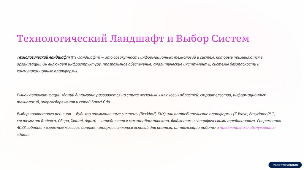 Технологический Ландшафт и Выбор СистемТехнологический ландшафт (ИТ-ландшафт) — это совокупность информационных технологий и систем, которые применяются в