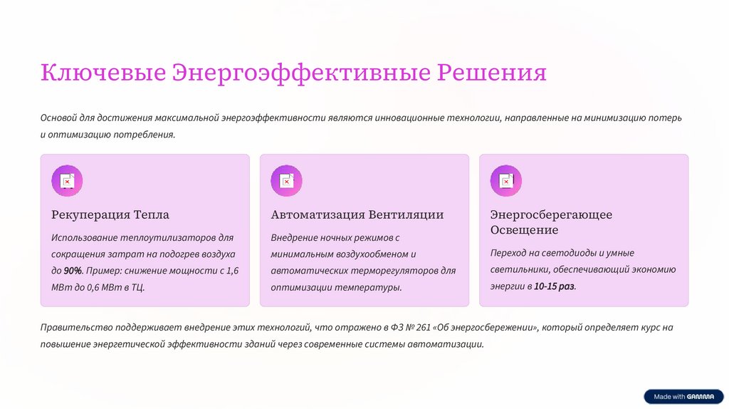 Ключевые Энергоэффективные РешенияОсновой для достижения максимальной энергоэффективности являются инновационные технологии, направленные на минимизацию потерь