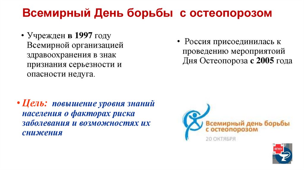 Всемирный День борьбы с остеопорозом• Учрежден в 1997 году