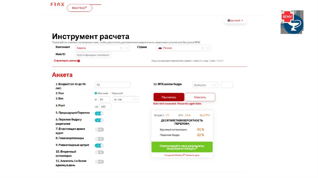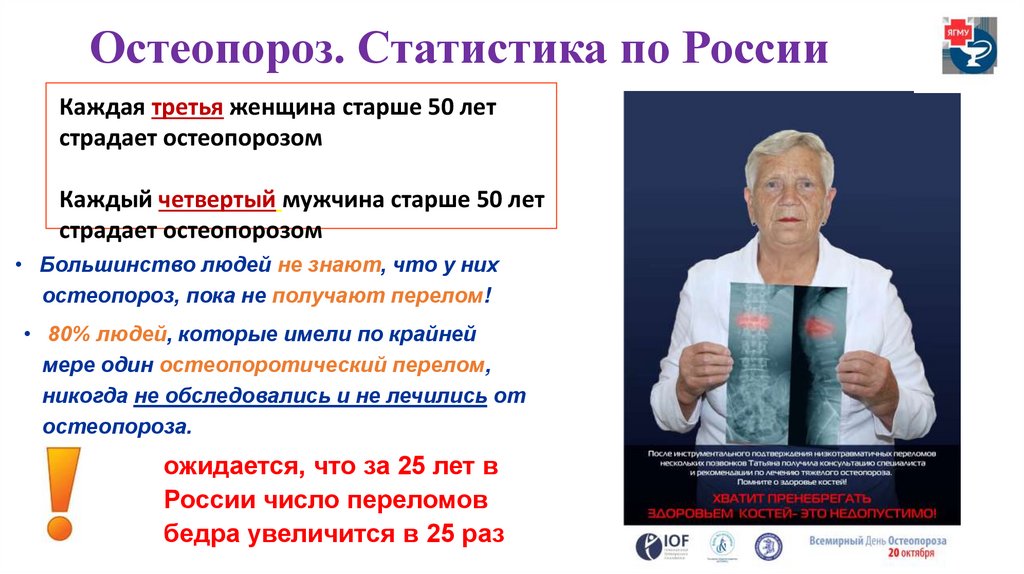 Остеопороз. Статистика по РоссииКаждая третья женщина старше 50 лет