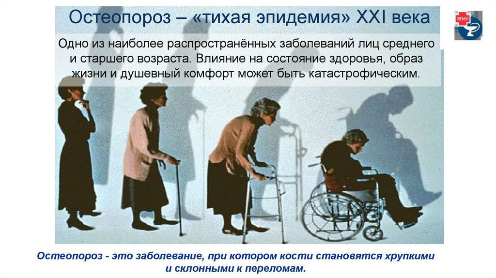 Остеопороз – «тихая эпидемия» XXI векаОдно из наиболее распространённых заболеваний лиц среднего