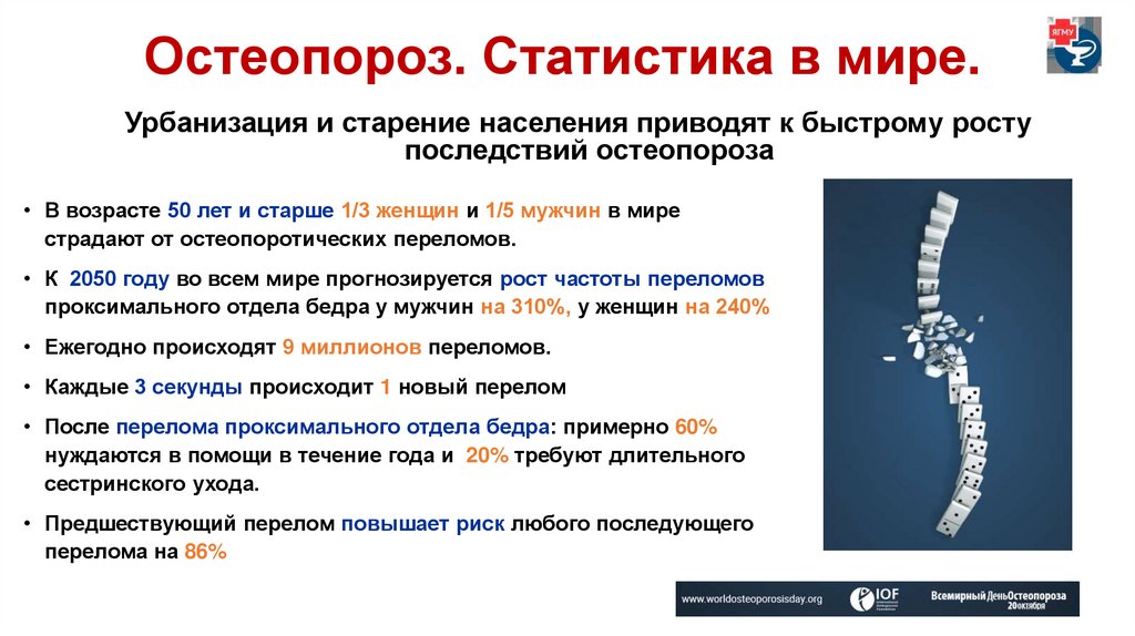 Остеопороз. Статистика в мире.Урбанизация и старение населения приводят к быстрому росту