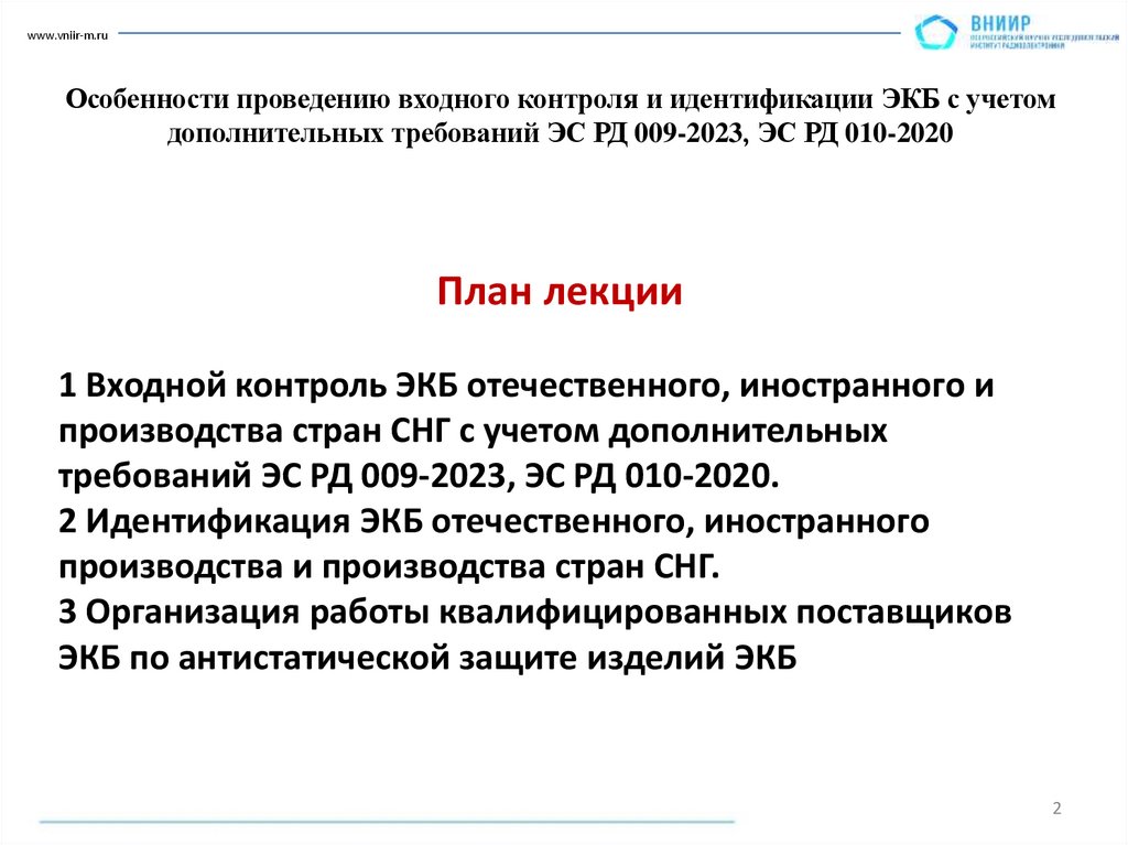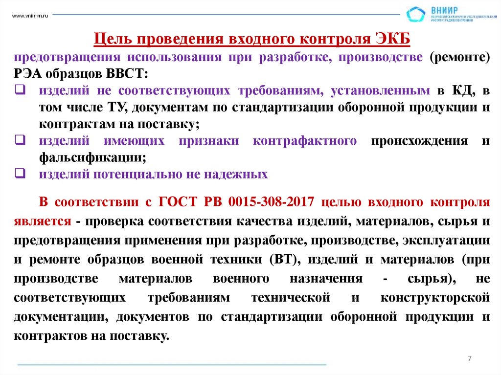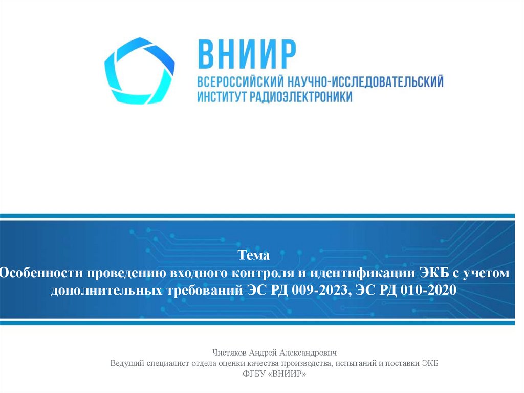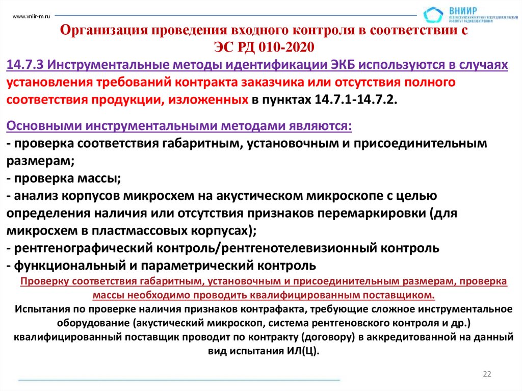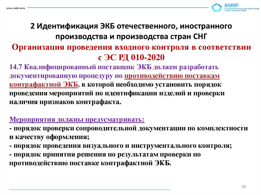 www.vniir-m.ruОсобенности проведению входного контроля и идентификации ЭКБ с учетом