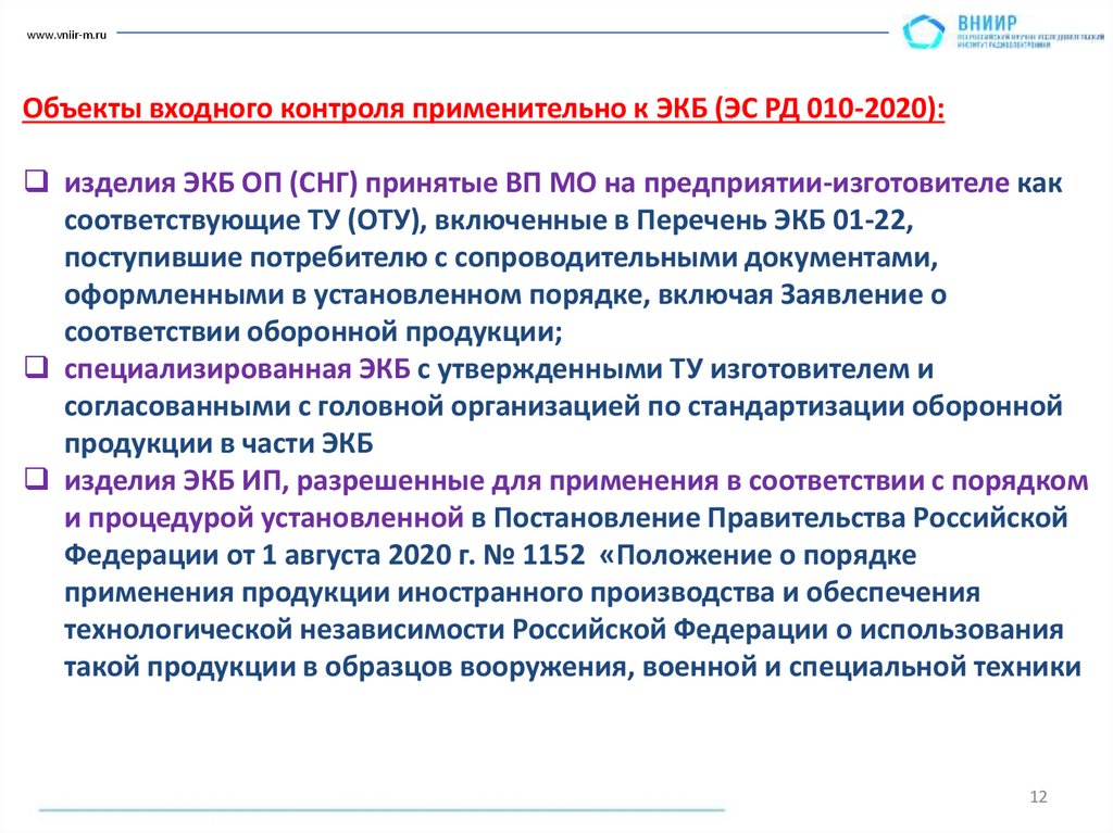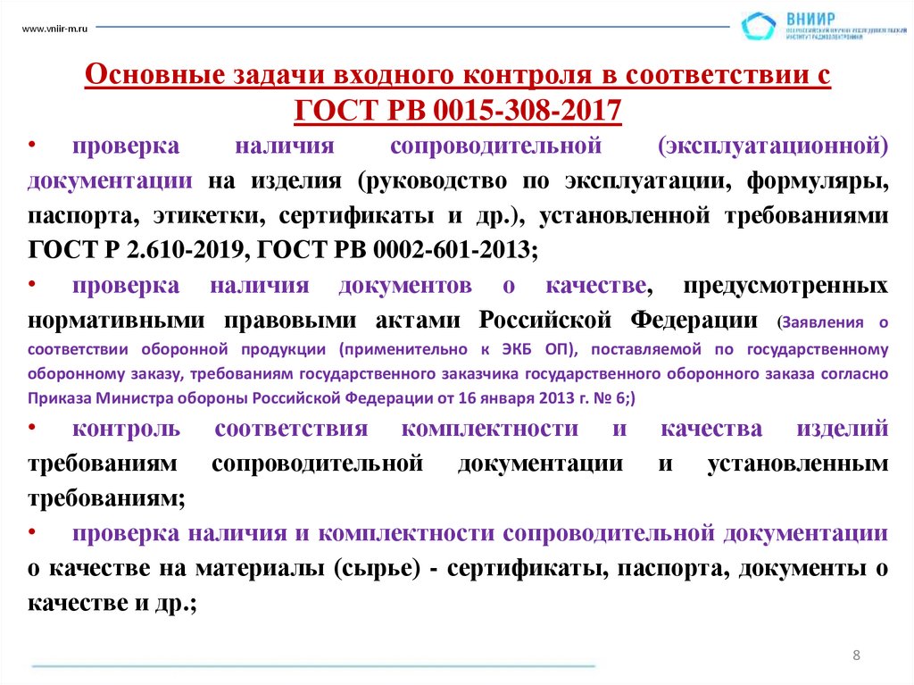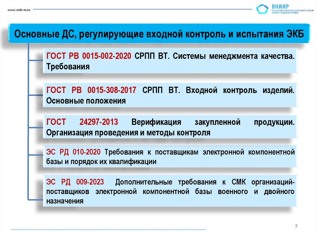 www.vniir-m.ruОсновные ДС, регулирующие входной контроль и испытания ЭКБ