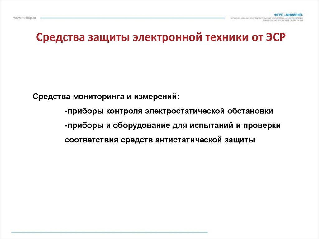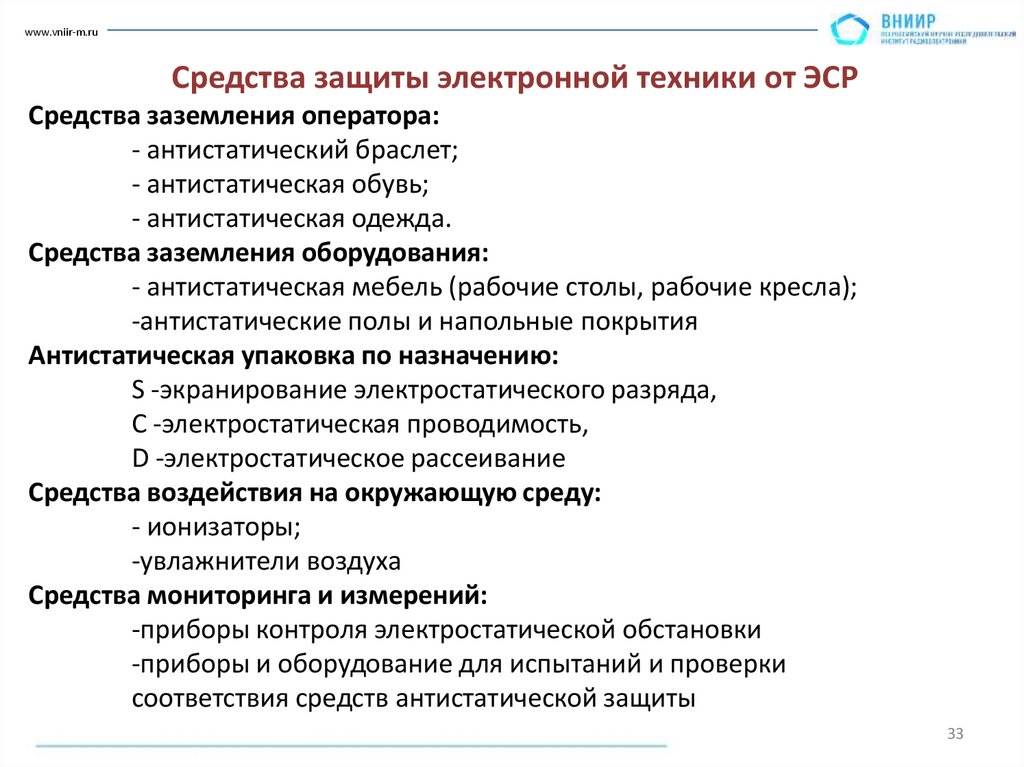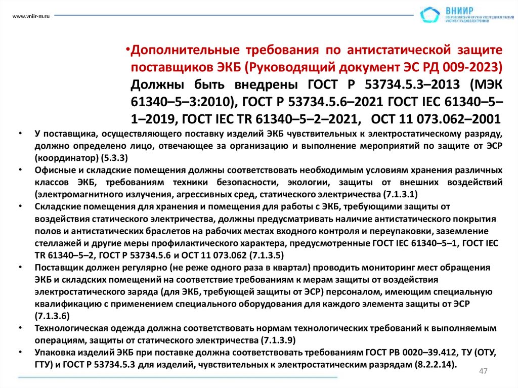 www.vniir-m.ru•Дополнительные требования по антистатической защите