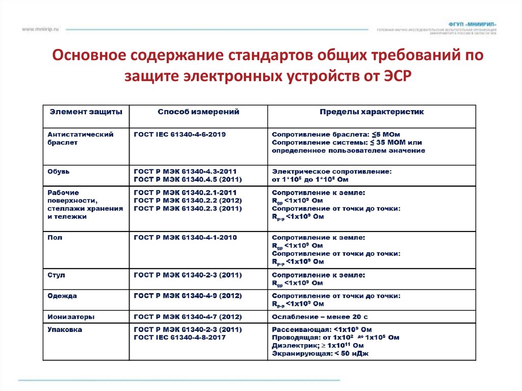 стеллажей и другие меры профилактического характера, предусмотренные ГОСТ IEC 61340–5–1, ГОСТ IEC