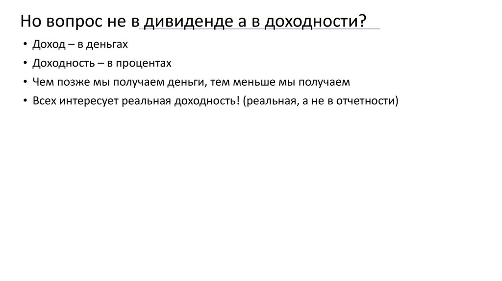 • (это касается и доходности других активов! Например – акций. У