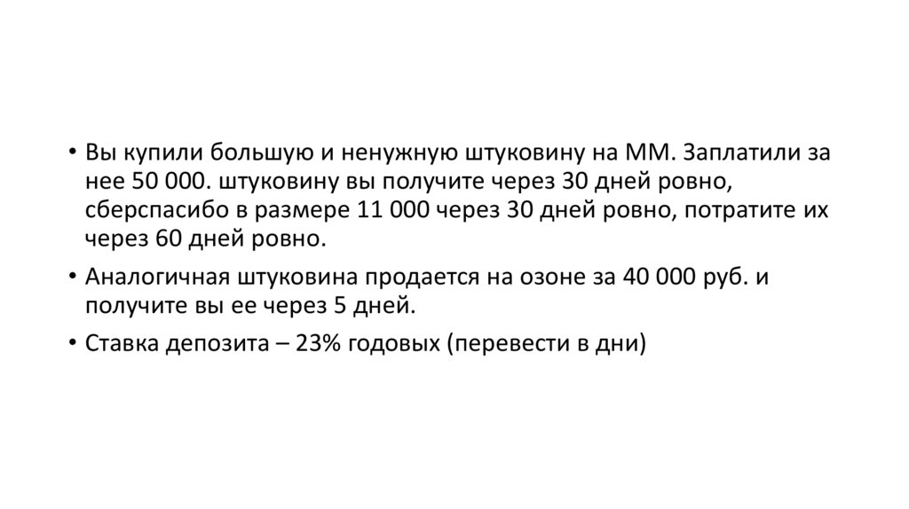 • Вы купили лотерейный билет за 100 руб• Выиграли через год 110