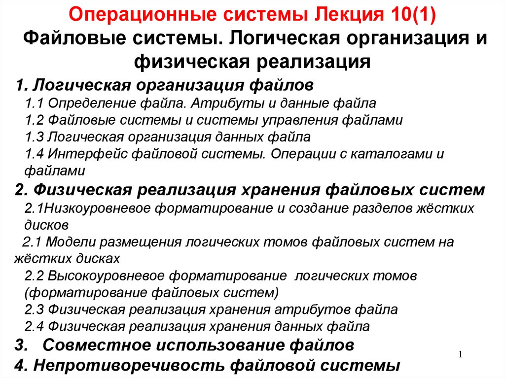 Операционные системы Лекция 10(1)Файловые системы. Логическая организация и