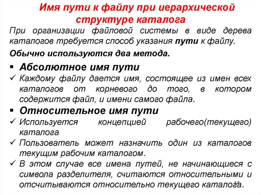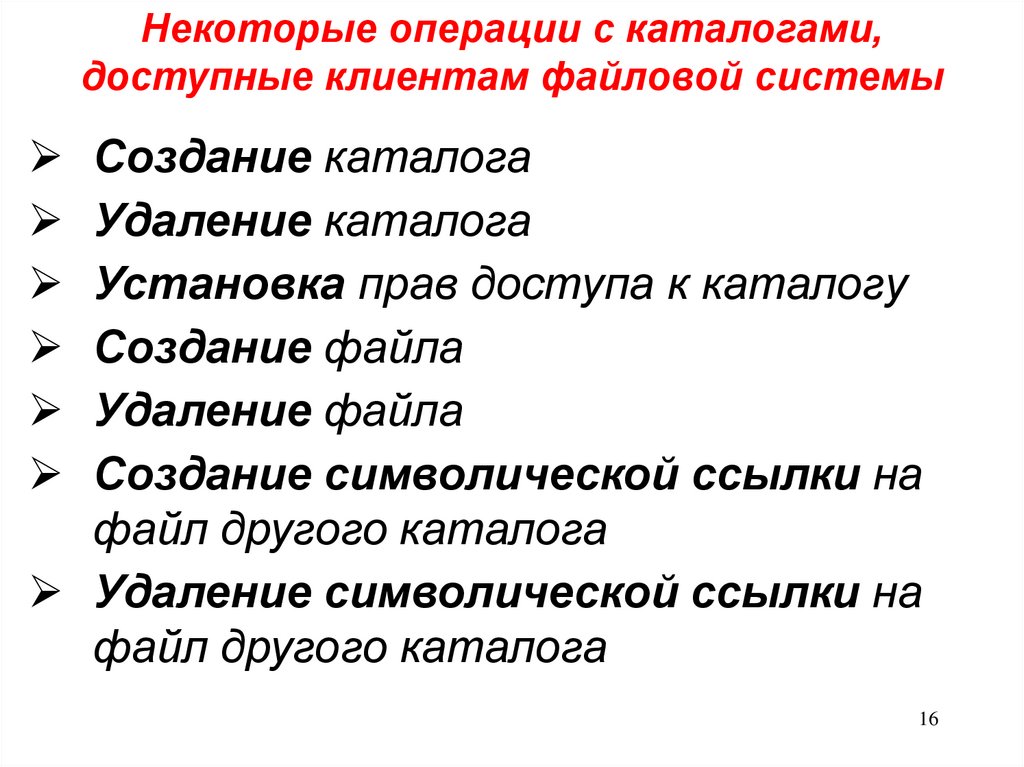1.4 Интерфейс файловой системы. Операции с каталогами и