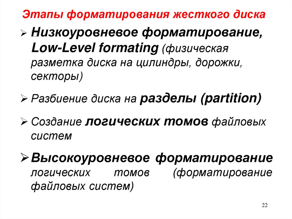 2.1Низкоуровневое форматирование и создание разделов жёстких