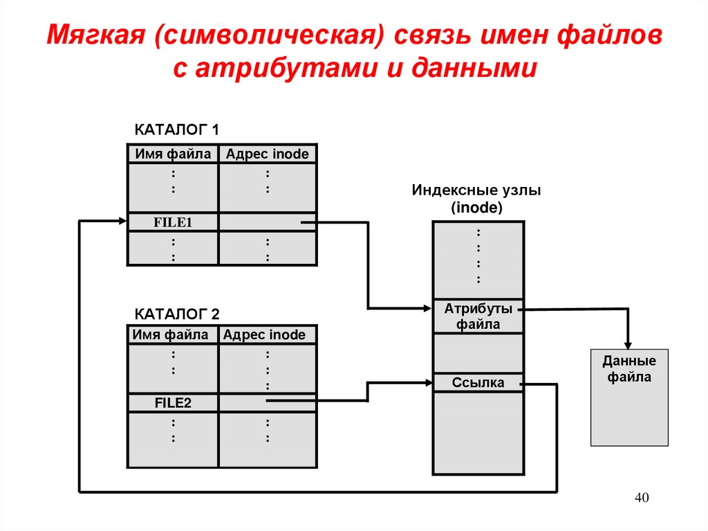 Мягкая (символическая) связь имен файловс атрибутами и данными