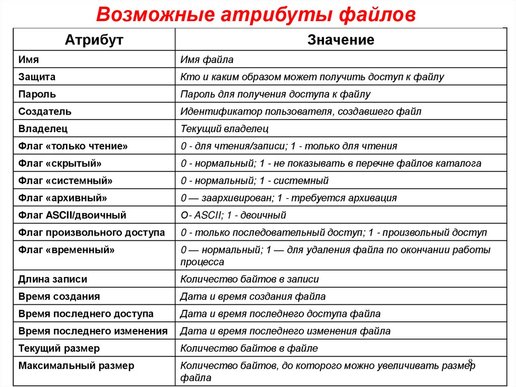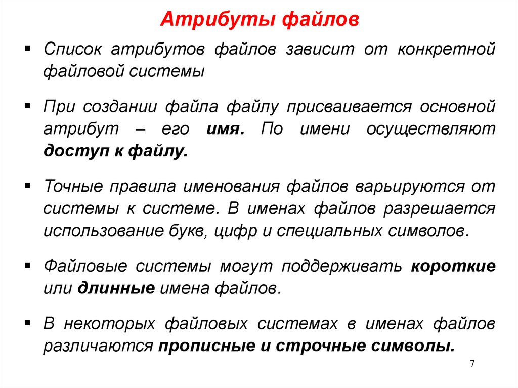Атрибуты файловСписок атрибутов файлов зависит от конкретной