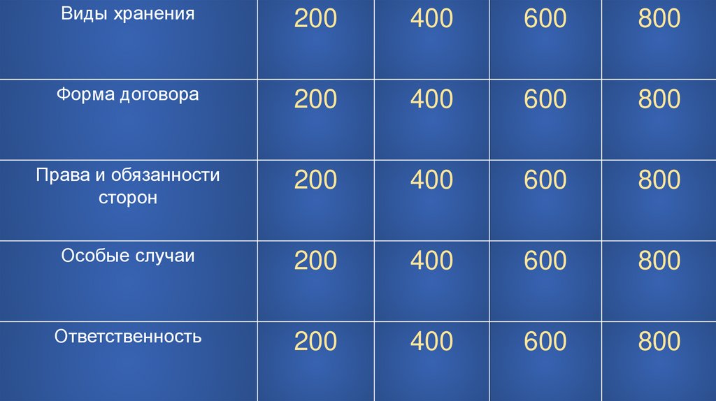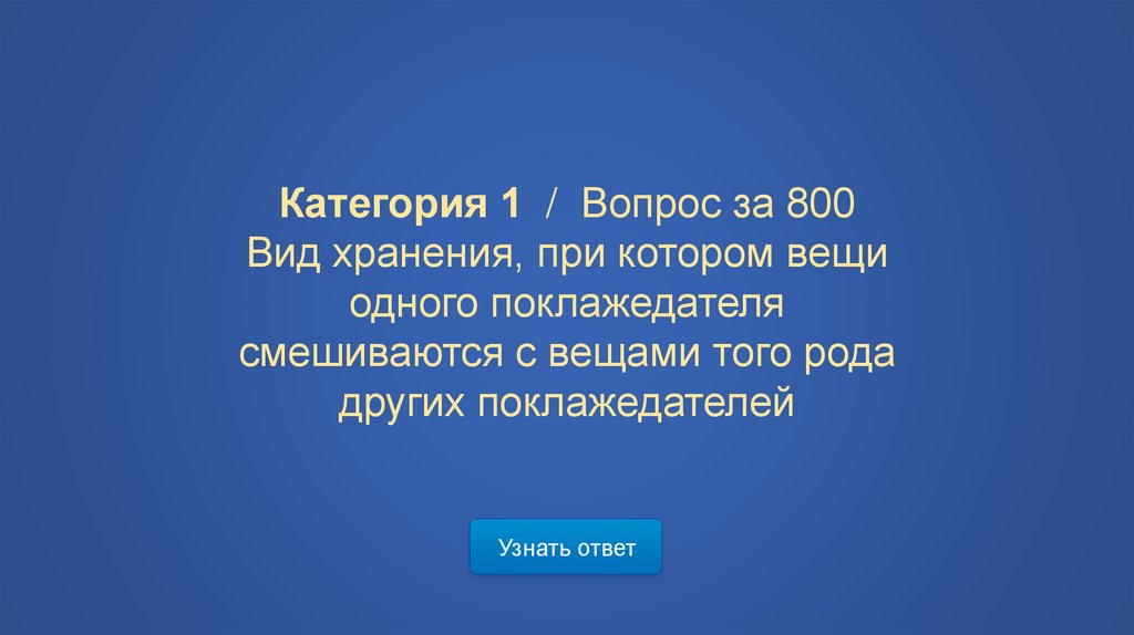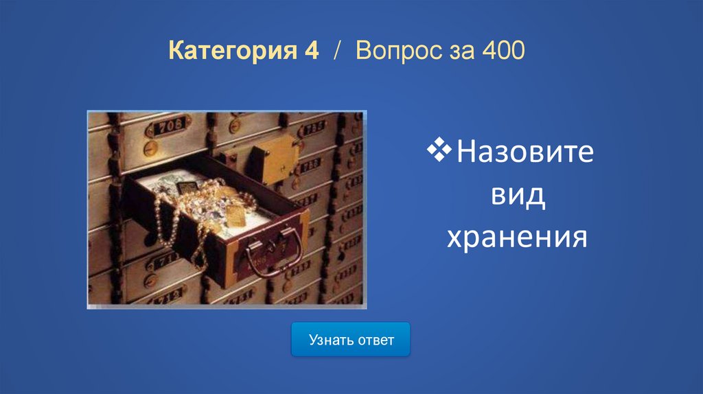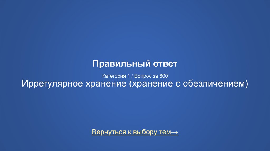 Категория 1 / Вопрос за 800Вид хранения, при котором вещи