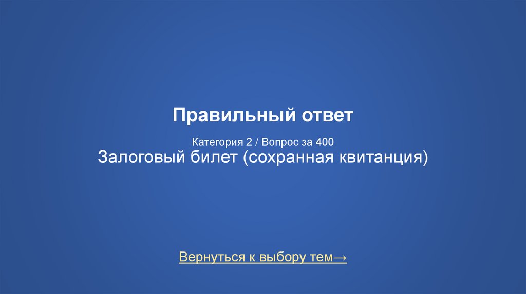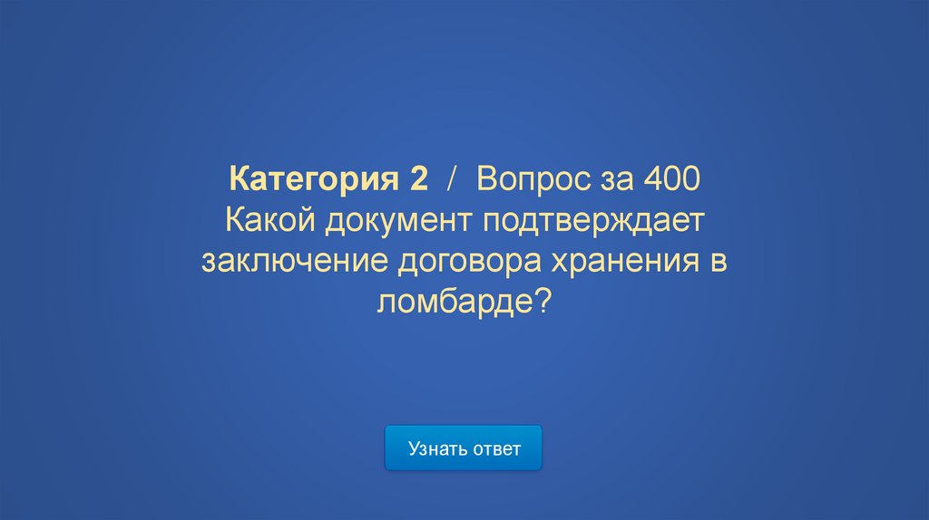 Категория 2 / Вопрос за 400Какой документ подтверждает