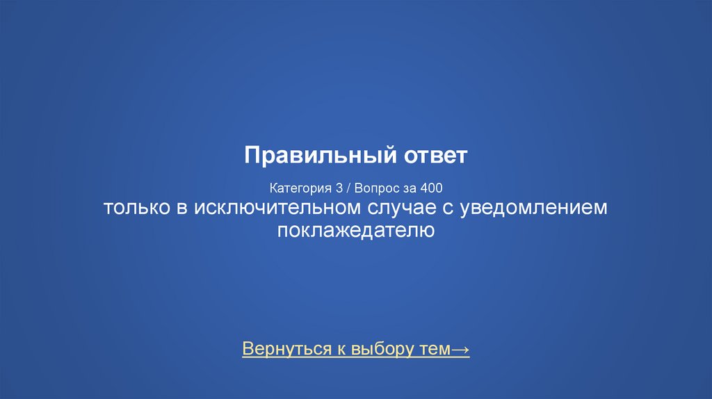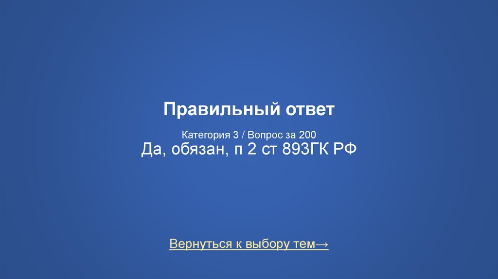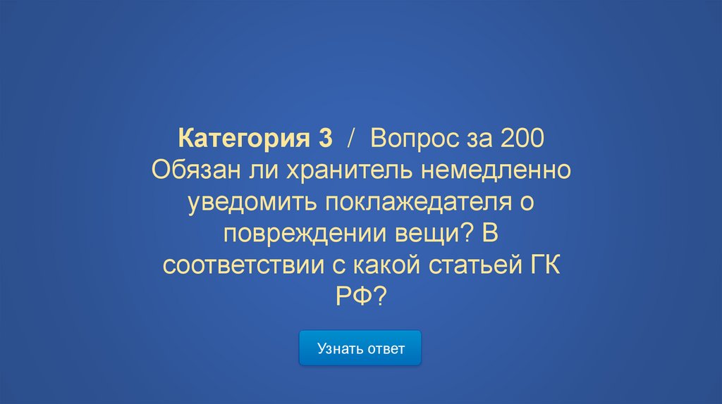 Категория 3 / Вопрос за 200Обязан ли хранитель немедленно