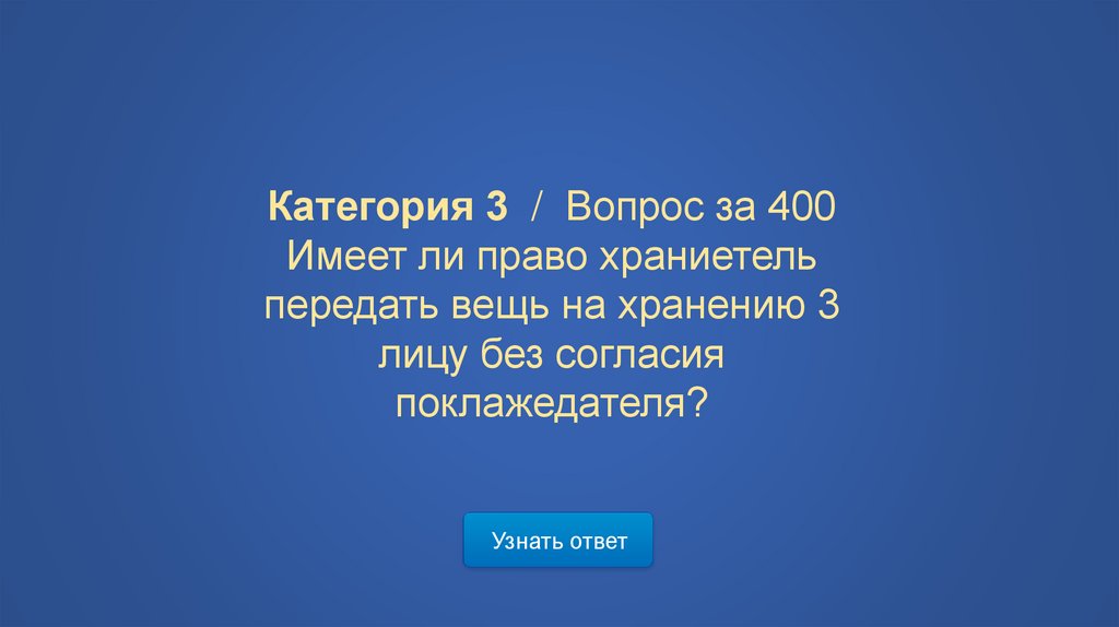 Категория 3 / Вопрос за 400Имеет ли право храниетель