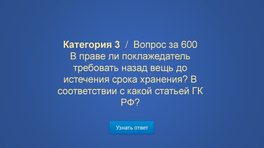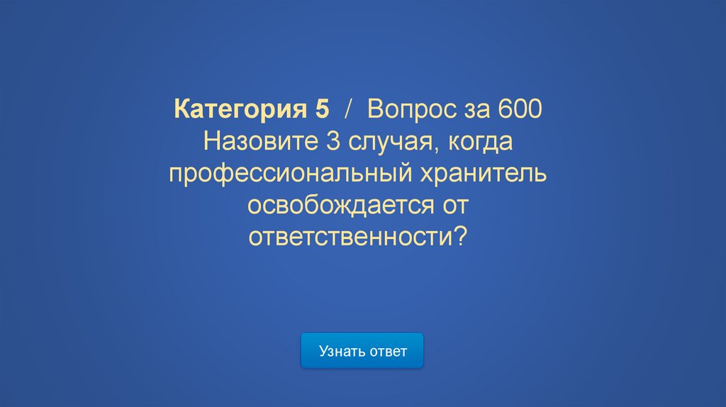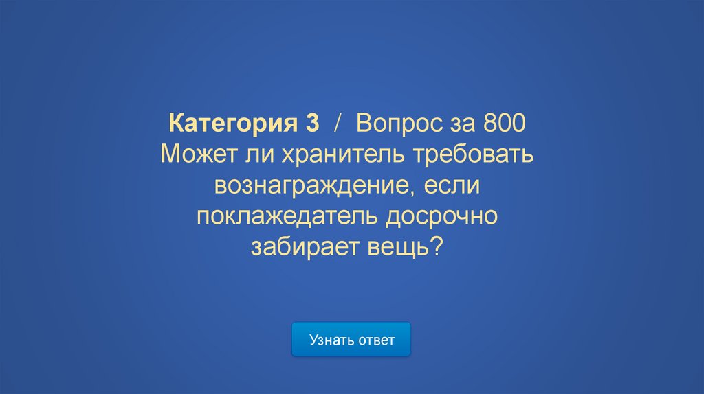 Категория 3 / Вопрос за 800Может ли хранитель требовать
