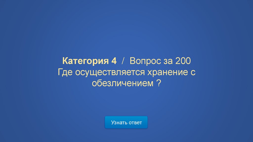Категория 4 / Вопрос за 200Где осуществляется хранение с
