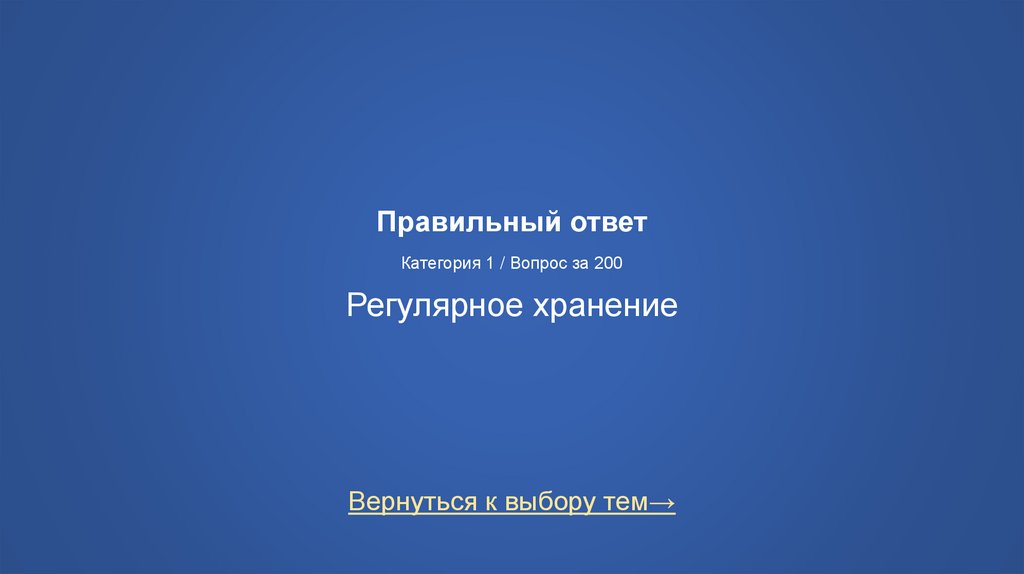 Категория 1 / Вопрос за 200Как называется хранение, при
