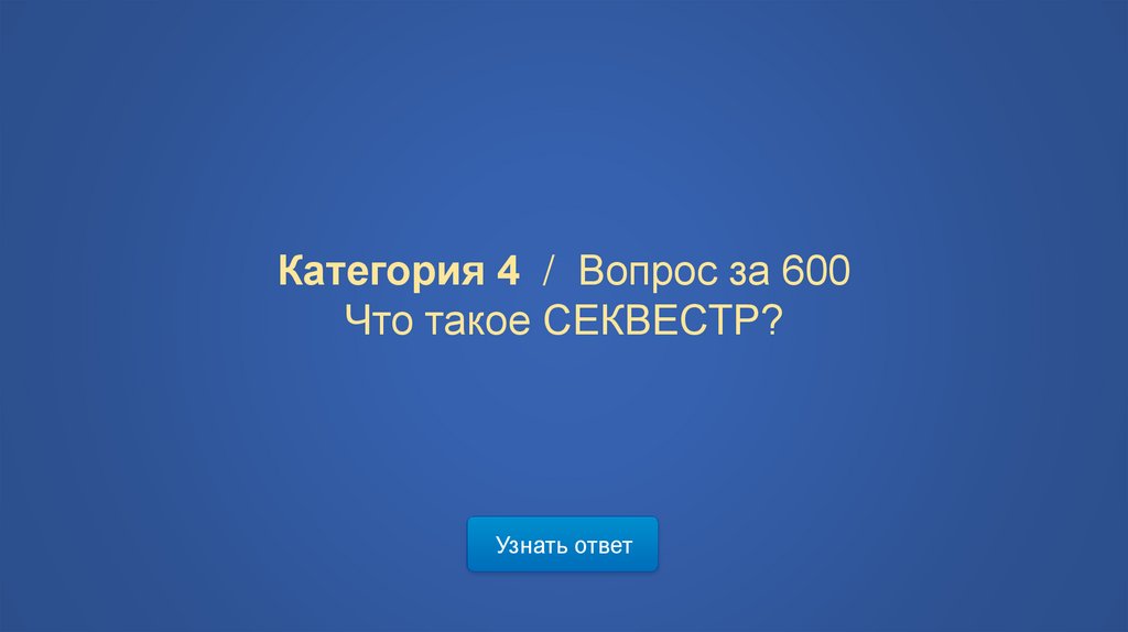 Категория 4 / Вопрос за 600Что такое СЕКВЕСТР?
