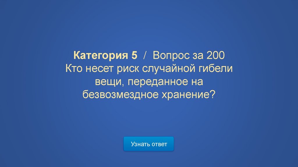 Категория 5 / Вопрос за 200Кто несет риск случайной гибели