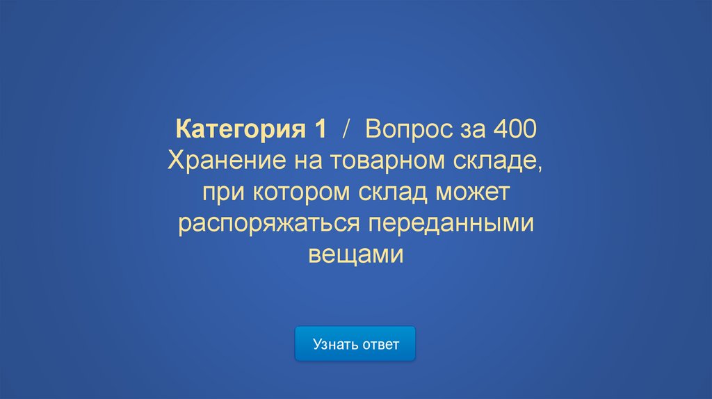 Категория 1 / Вопрос за 400Хранение на товарном складе,