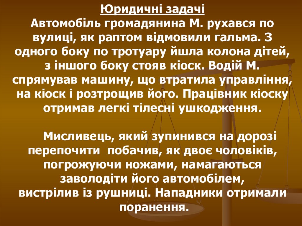 Юридичні задачіАвтомобіль громадянина М. рухався по