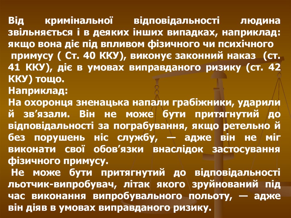 41 ККУ), діє в умовах виправданого ризику (ст. 42