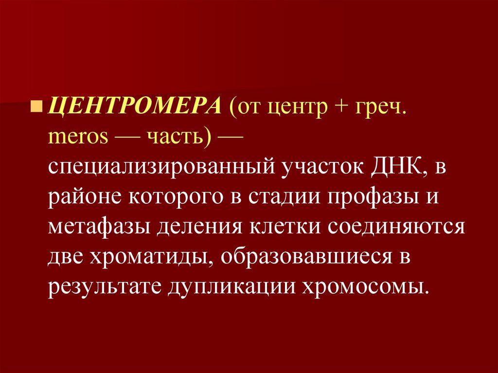 ЦЕНТРОМЕРА (от центр + греч.meros — часть) —