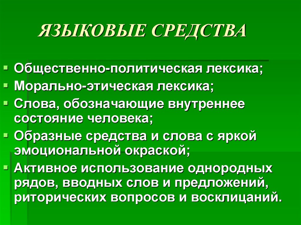 ЯЗЫКОВЫЕ СРЕДСТВАОбщественно-политическая лексика;