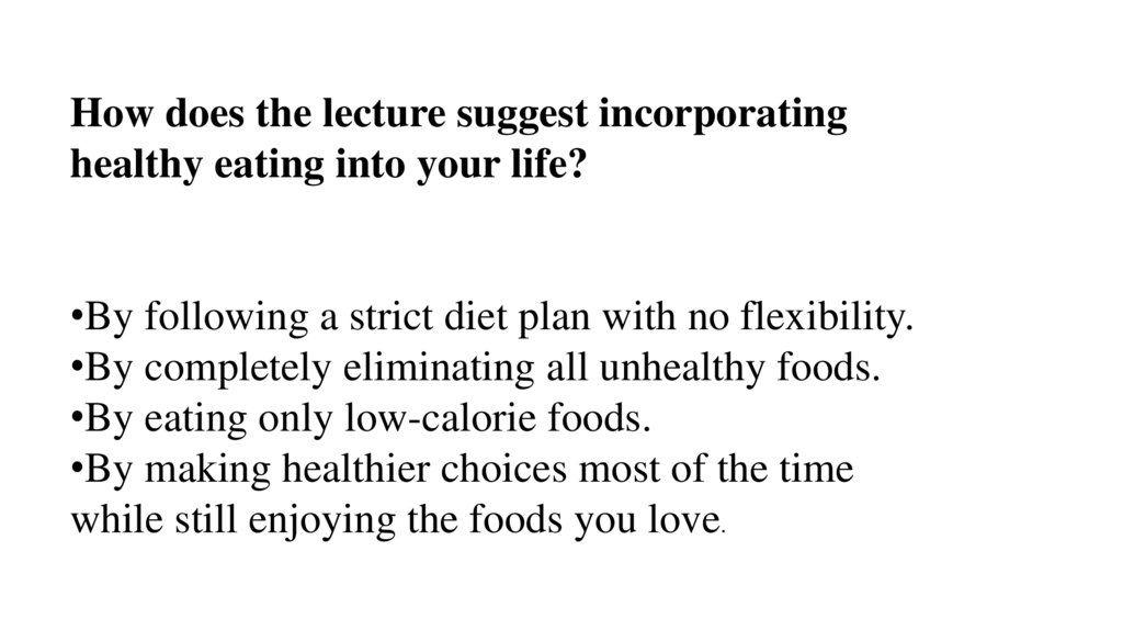 How does the lecture suggest incorporatinghealthy eating into your life?