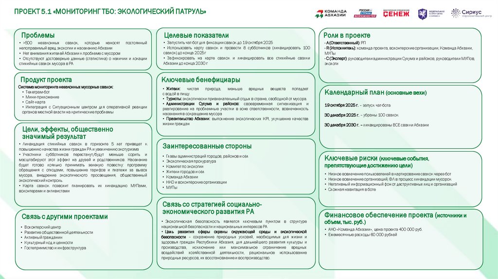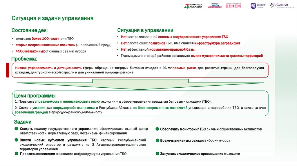 1. Повысить управляемость и минимизировать риски экологии – в сфере управления твердыми бытовыми отходами (ТБО).