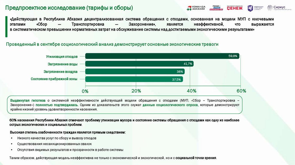 Предпроектное исследование (тарифы и сборы)«Действующая в Республике Абхазия децентрализованная система обращения с отходами, основанная на модели МУП с ключевыми