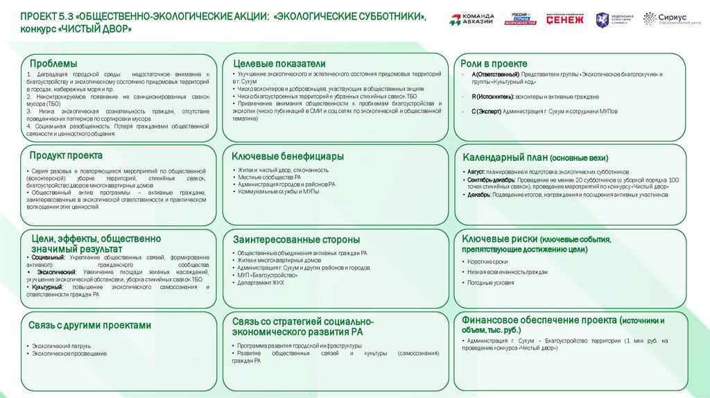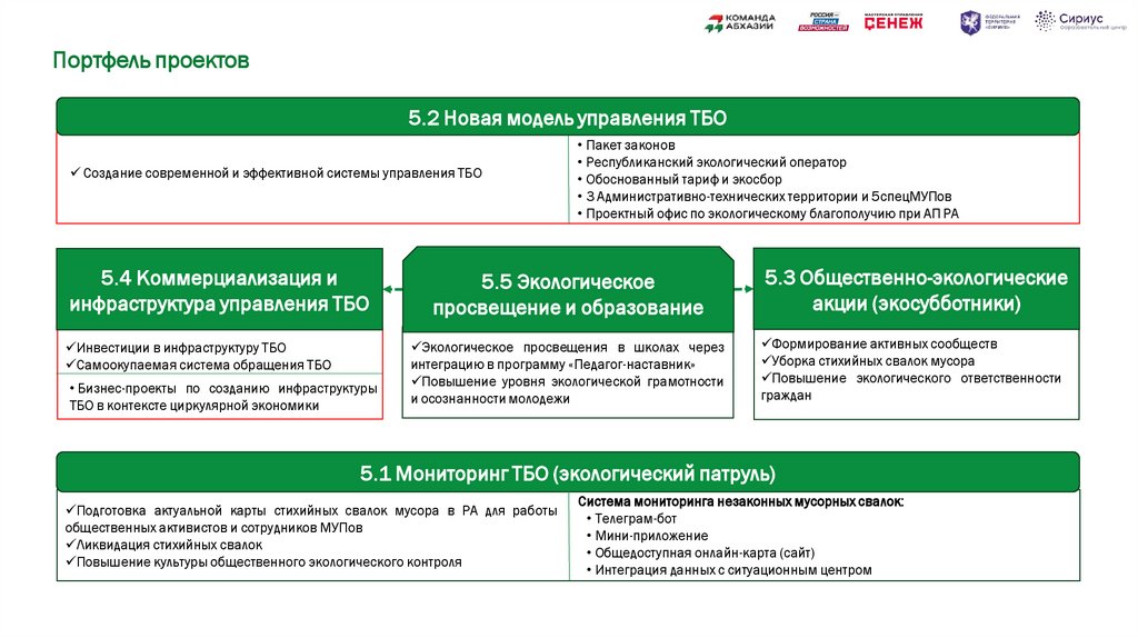 2. Создать условия для «циркулярной» экономики в Республике Абхазии на базе современных технологий утилизации и переработки ТБО, а также за счет