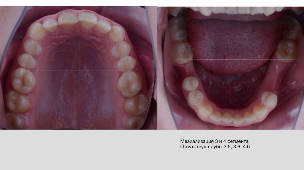 Мезиализация 3 и 4 сегментаОтсутствуют зубы 3.5, 3.6, 4.6