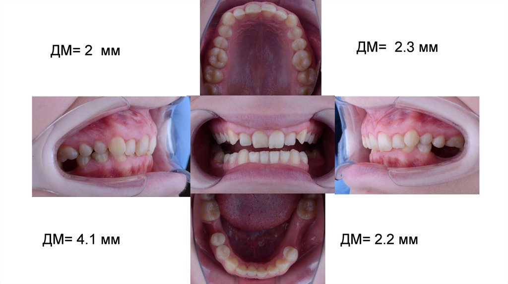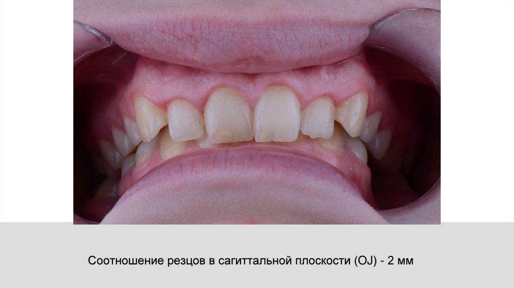Соотношение резцов в сагиттальной плоскости (OJ) - 2 мм9.