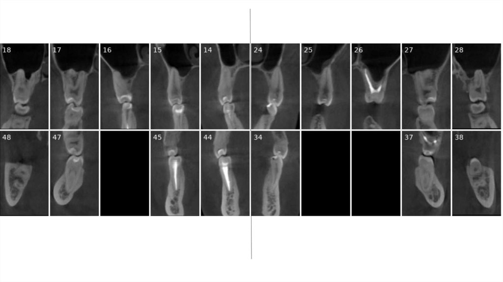17. Отсутствуют зубы 3.5, 3.6, 4.6