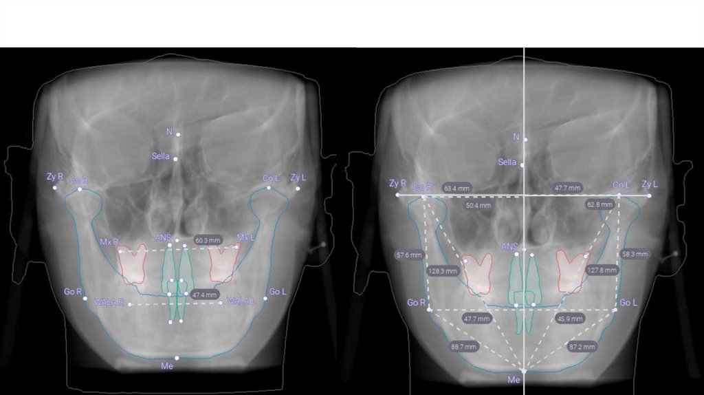 3. Симметричное расположение зрачковой линии, окклюзионная плоскость не имеет наклона