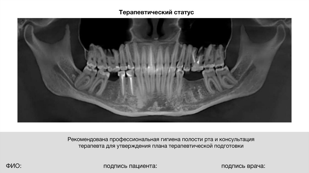 Терапевтический статусРекомендована профессиональная гигиена полости рта и консультация