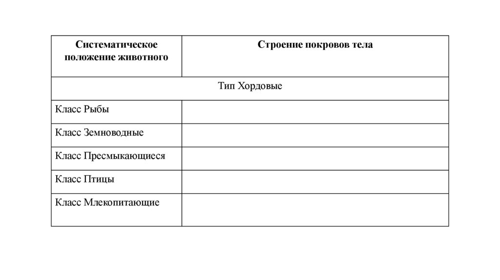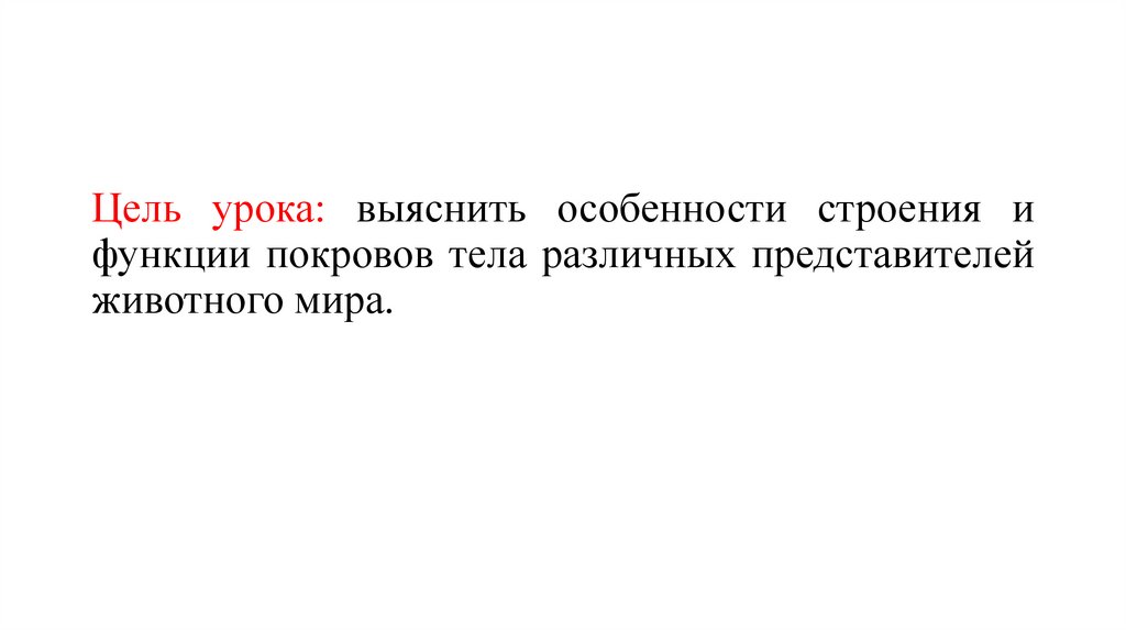 Цель урока: выяснить особенности строения ифункции покровов тела различных представителей