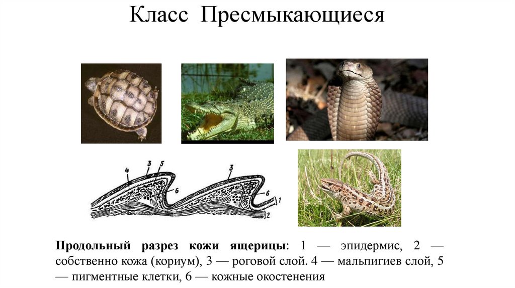 Класс ПресмыкающиесяПродольный разрез кожи ящерицы: 1 — эпидермис, 2 —