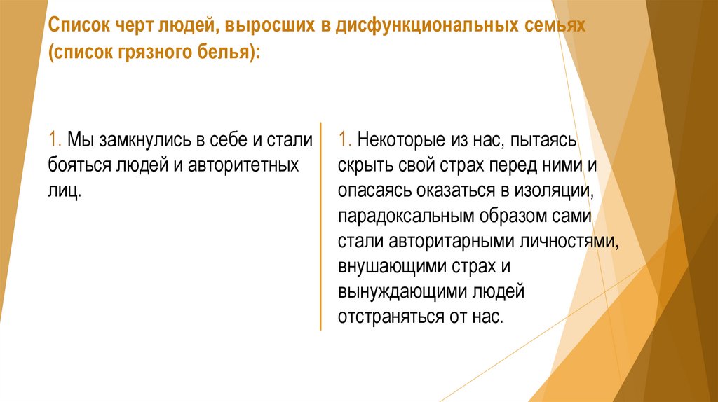 1. Список черт людей, выросших в дисфункциональных семьях (список грязного белья):
