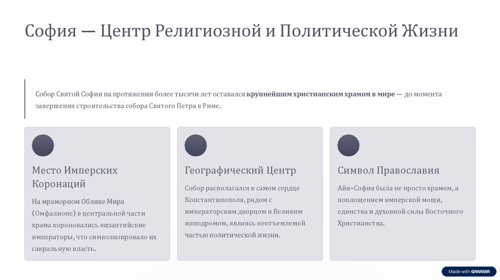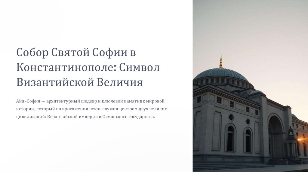 София — Центр Религиозной и Политической ЖизниСобор Святой Софии на протяжении более тысячи лет оставался крупнейшим христианским храмом в мире — до момента