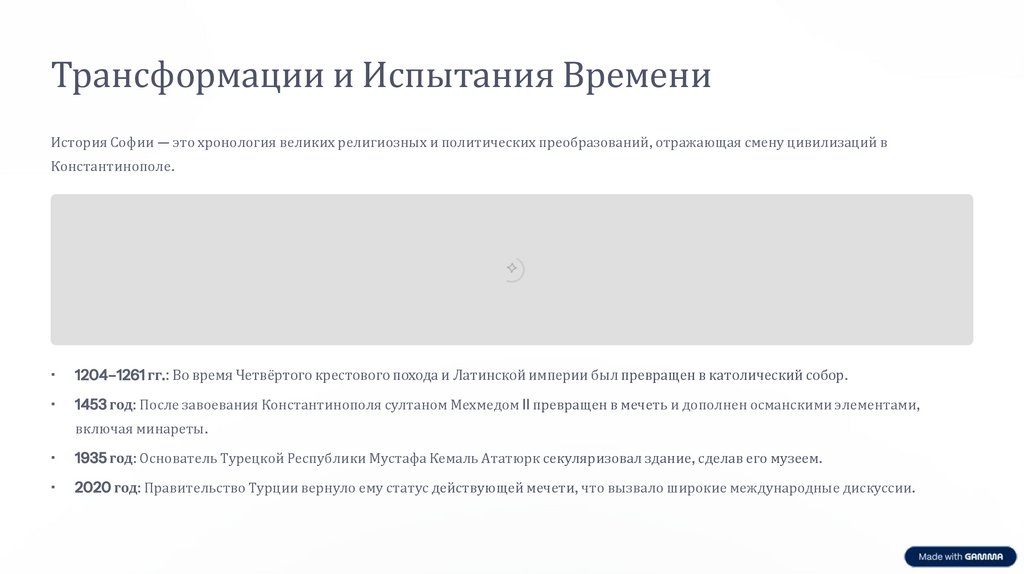 Его история — отражение борьбы, возрождения и культурного синтеза Востока и Запада. Сегодня Айя-София продолжает