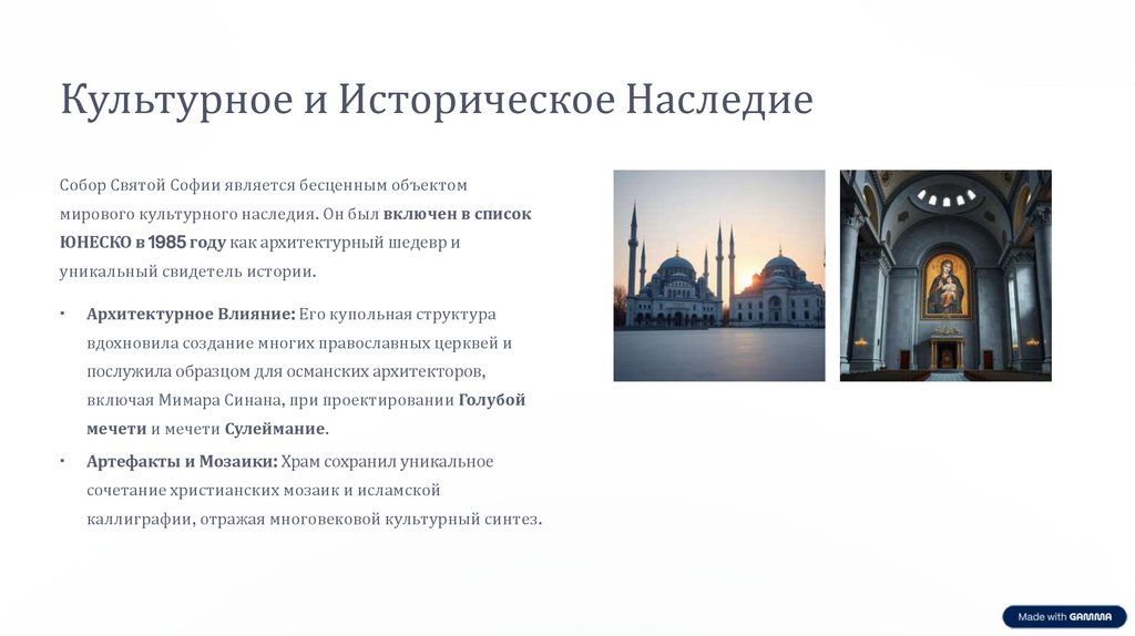 Культурное и Историческое НаследиеСобор Святой Софии является бесценным объектом