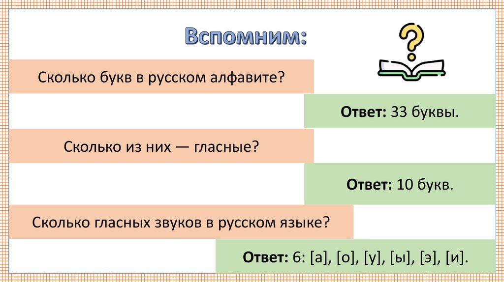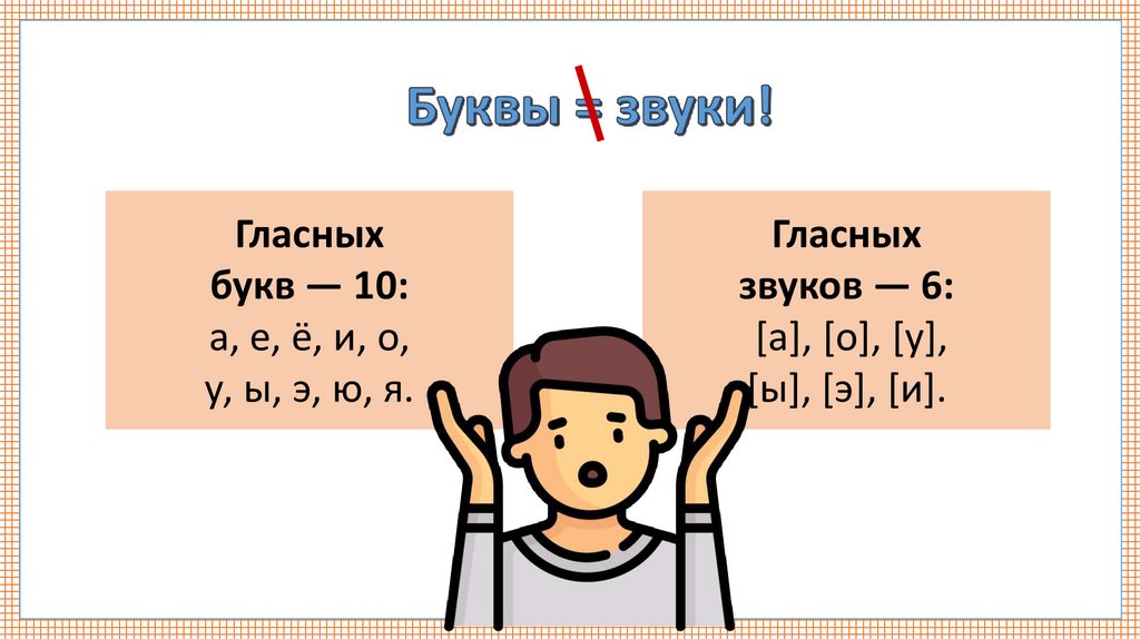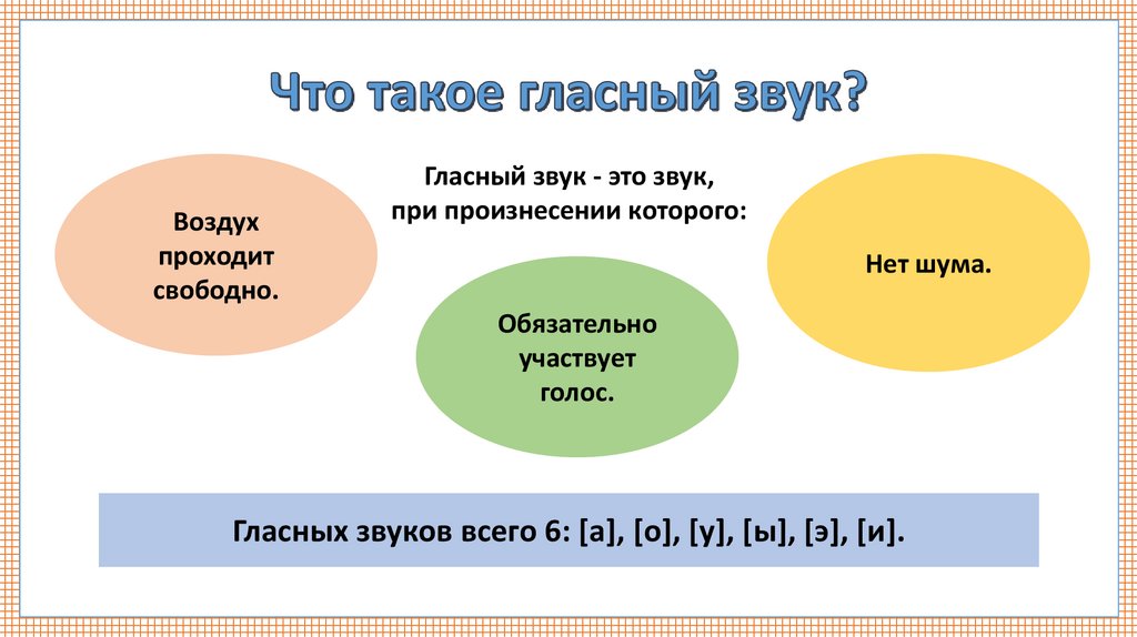 Гласных звуков всего 6: [а], [о], [у], [ы], [э], [и].